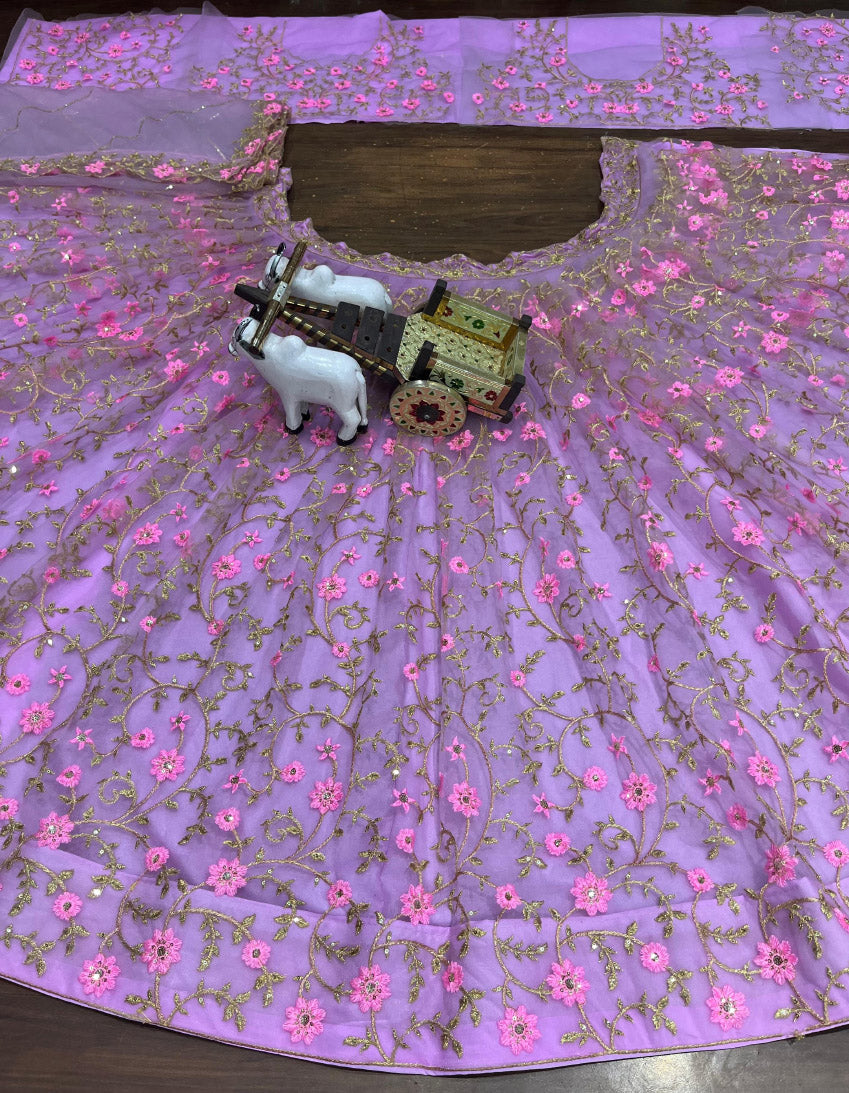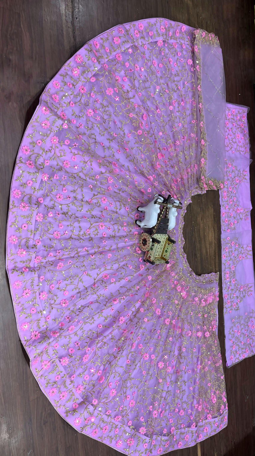 The blouse, made from premium butterfly net fabric, comes unstitched with 1 meter of embroidered sequins work, giving you the flexibility to tailor it to your preferred blouse design. Completing the ensemble is a 2.3-meter mono net dupatta, beautifully embroidered with sequins, making this lehenga choli set a graceful outfit for traditional as well as modern celebrations.
